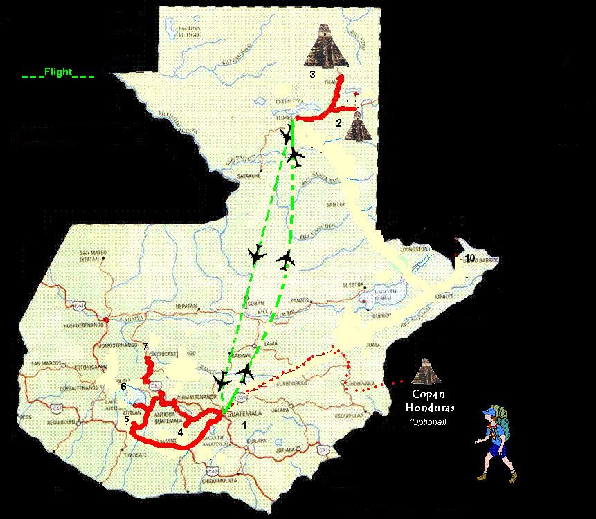 C'est d'ici, au cœur de la culture Maya, que gît un monde très différent du nôtre, une bio- diversité d'espèce unique qui reflète la valeur incalculable de la nature. Nous vous invitons à nous accompagner à ce paradis terrestre à travers nos circuits originaux avec tout ce que nous lèguent les ancêtres Mayas. Des circuits innovateurs d’où vous retrouverez une diversité de programmes inoubliables à la découverte de la culture, le folklore, la faune, et des paysages à couper le souffle. Nos forfaits offrent la meilleure façon de connaître et d’aimer le Guatemala dans son authenticité. Nous avons eu la chance de faire voyager plusieurs centaines de groupes et individus. N’hésitez pas de vous communiquer avec nous pour de plus amples informations sur nos séjours pré dessinés et sur mesure. Nous nous ferons un plaisir de vous aider à faire de votre voyage un véritable succès ! Voici quelques exemples.